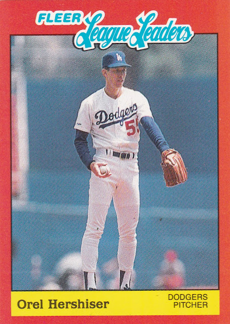 Leading off are a couple of Dodgers from the last LA squad to win all the marbles. The card above featuring a young Bulldog and the one below with Gibby, the MVP, are from a 44-card set that Fleer put out in 1989.
